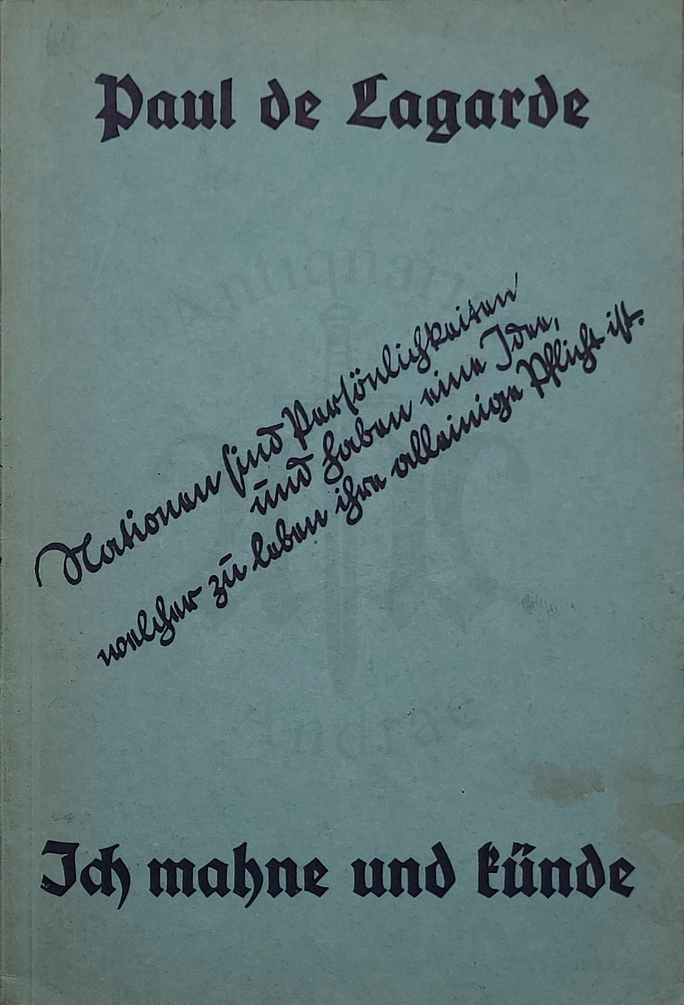 Ausgewählt aus den Schriften Lagardes und mit Angaben aus dem Leben des Verfassers sowie mit Anmerkungen versehen von Hardy L. Schmidt